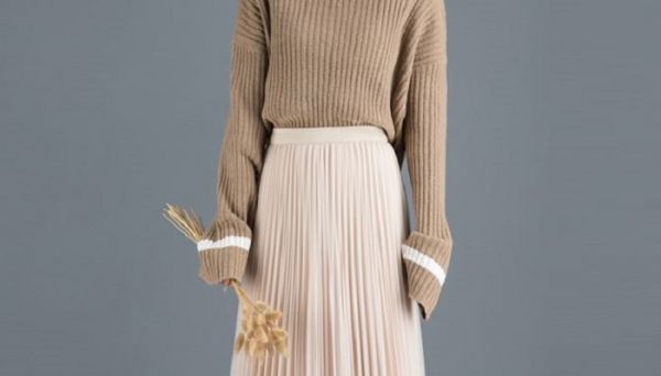 最好可以选择竖纹的针织衫,竖纹针织衫的条纹迎合了长纱裙的竖型褶皱,搭配起来可以在视觉上拉伸穿着者的身形,让穿着者看起来更修长、纤细。