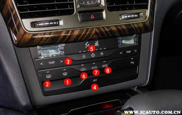 红旗H7空调按钮图解,红旗H7空调除雾和暖风开启方法